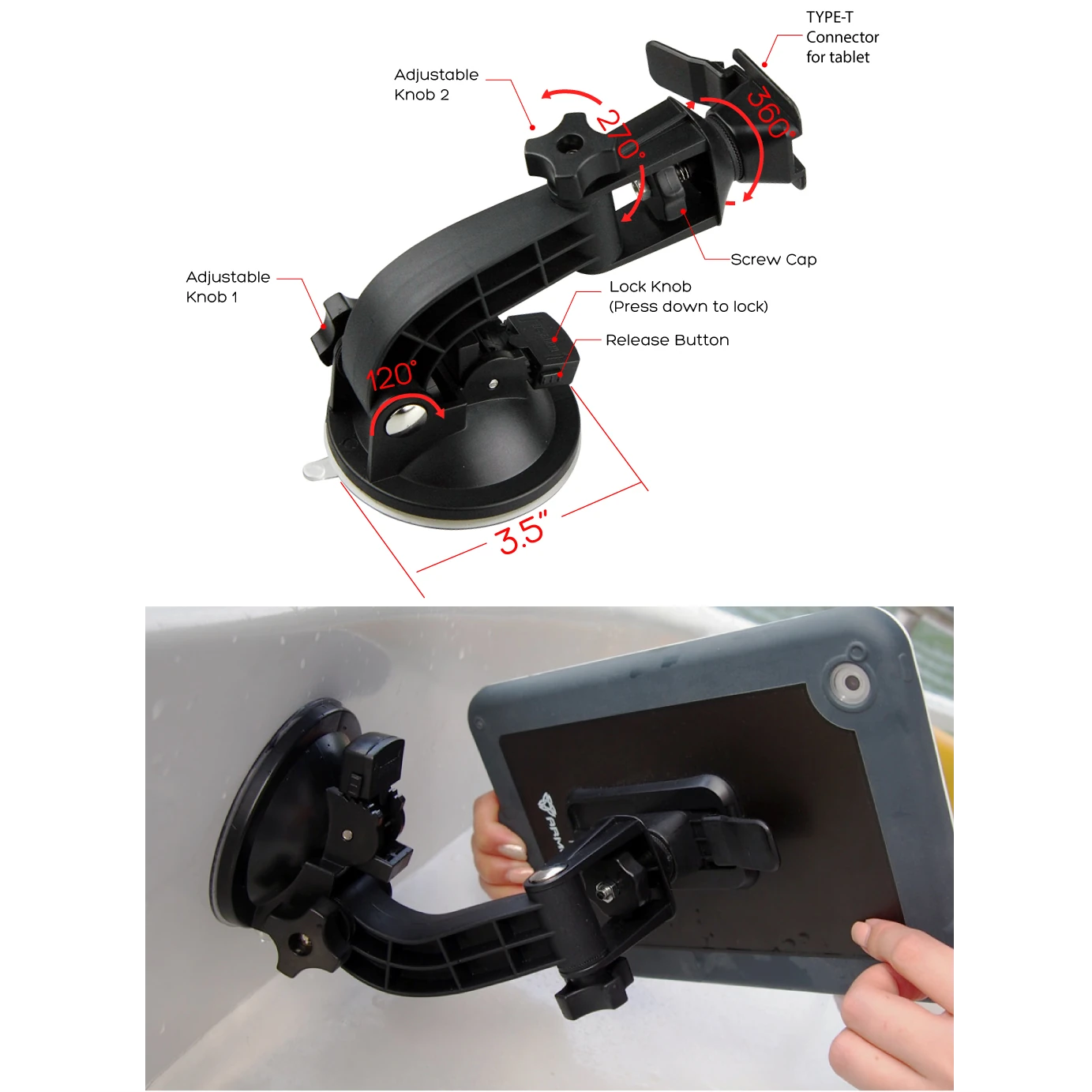 Armor-X X14T Tablet Suction Cup Mount to wytrzymały uchwyt klasy rugged, zaprojektowany do bezpiecznego mocowania tabletów w samochodach, łodziach motorowych, jachtach, kamperach oraz w zastosowaniach outdoorowych i przemysłowych. Dzięki bardzo mocnej przyssawce 90 mm zapewnia doskonałą stabilność nawet przy falowaniu, wibracjach i dynamicznej jeździe.